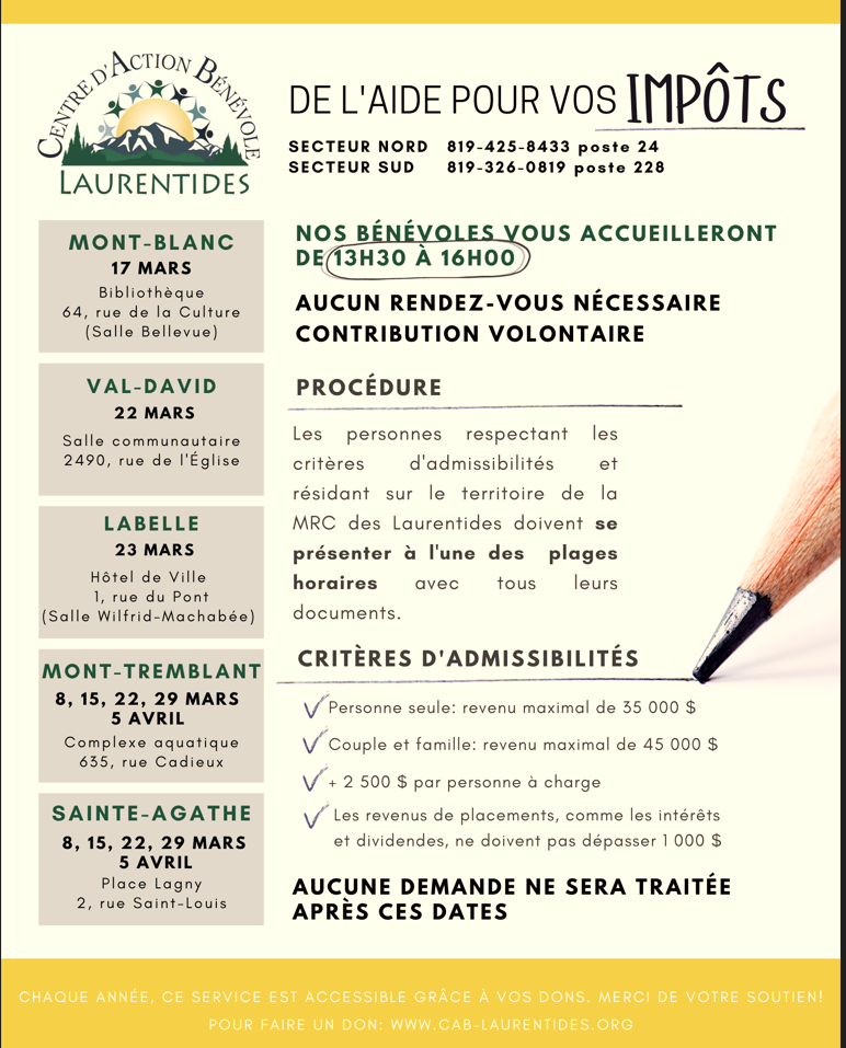 Les comptes de taxes pour l’année 2023 ont été transmis par la poste le 27 janvier dernier. Cette année nous sommes à la deuxième année du rôle triennal, 2022-2023-2024. Nous en profitons pour vous rappeler que le premier versement 2023 doit être effectué au plus tard le 3 mars prochain. Il est possible de nous faire parvenir votre paiement par chèque, par le biais de votre plateforme bancaire, ou encore, en vous présentant à l’hôtel de ville. Nous vous rappelons que les cartes de crédit ne sont pas acceptées en paiement à l’hôtel de ville.