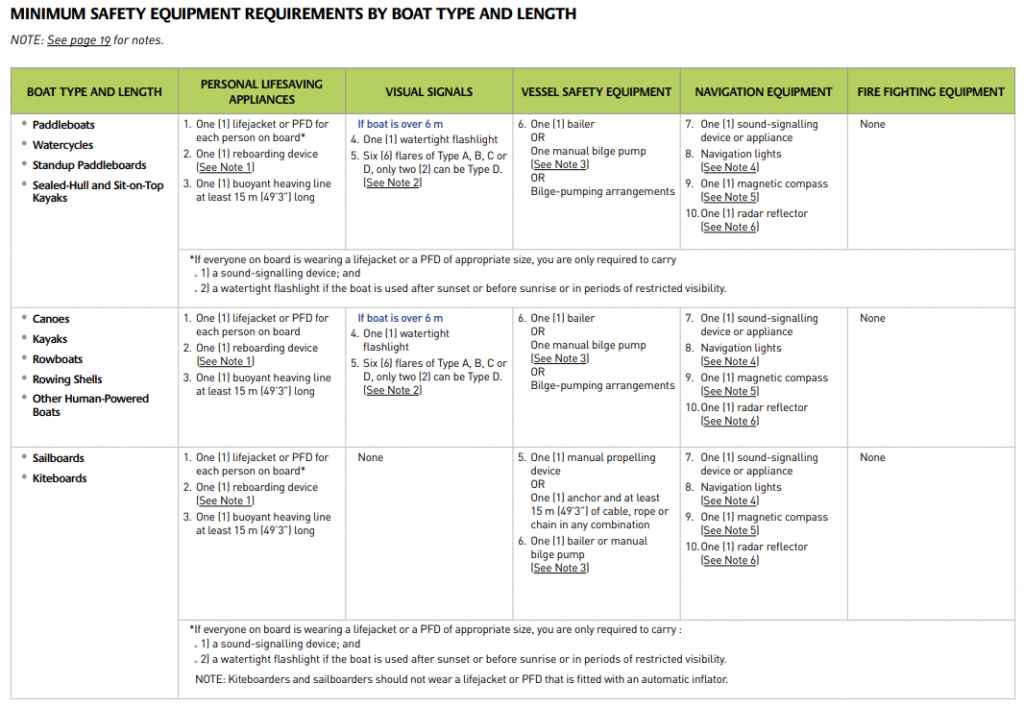 You can find this information by consulting the Safe Boating Guide – Safety Tips and Requirements for Pleasure Crafts at the following link: https://tc.canada.ca/sites/default/files/migrated/tp_511e.pdf